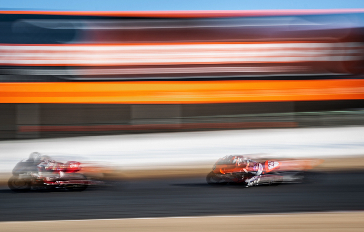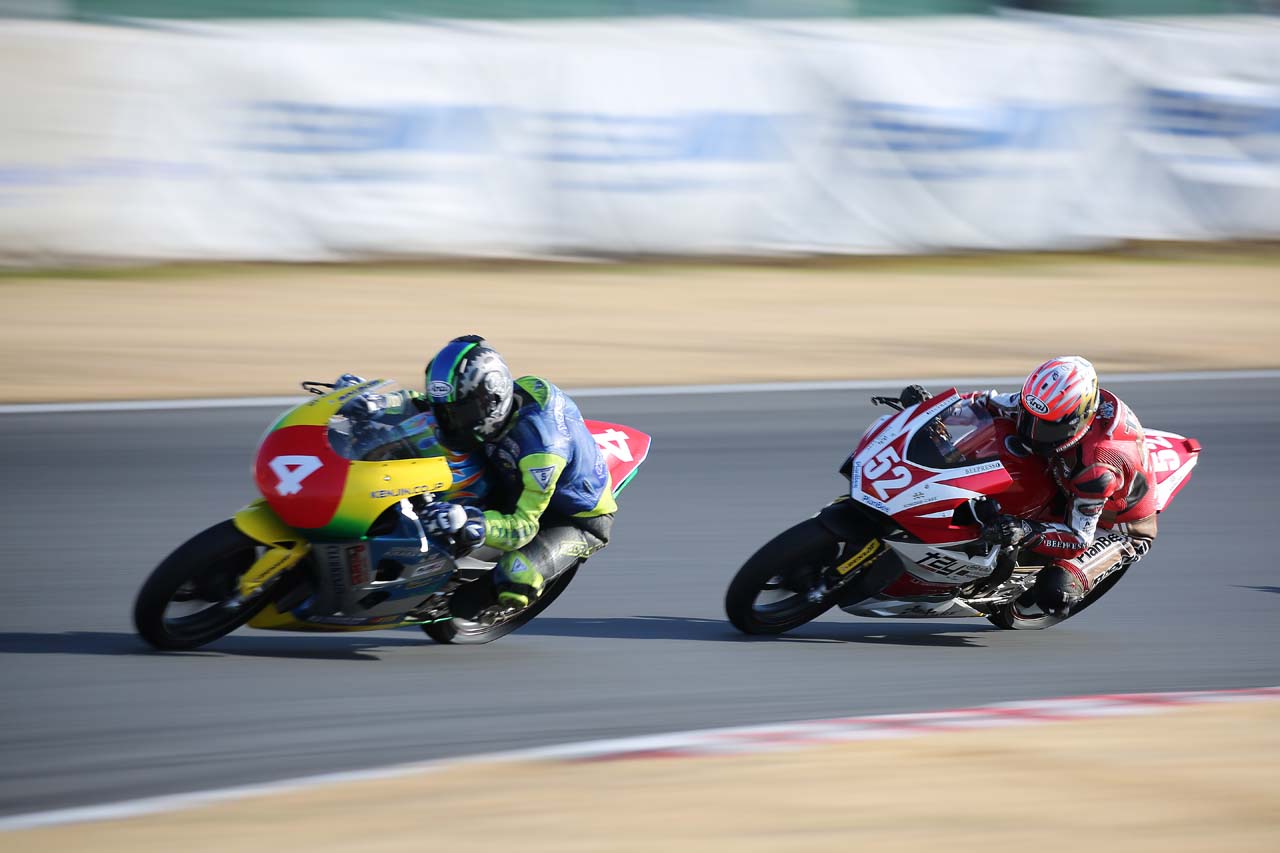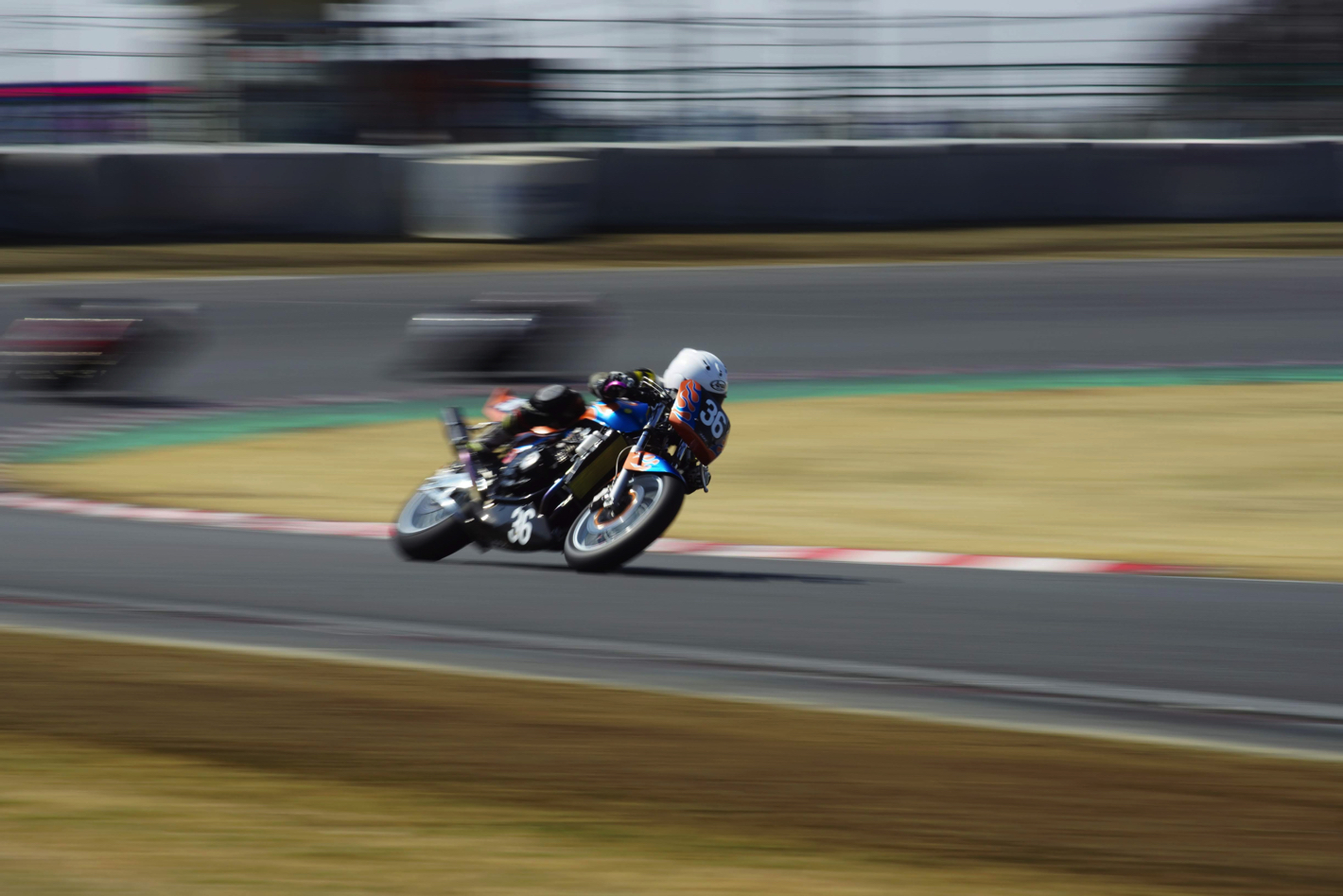 イベント当日は天気に恵まれ、絶好の流し撮り日和となりました。各自の機材に加えて、露出/シャッタースピードのコントロールに必須の可変NDフィルターと、本イベントのために貸し出されたタムロンの望遠レンズを用意し、まずは基本編の座学。そののあと、コース脇のプレスエリアでの流し撮りで実習がスタート。プレスエリアからの撮影は迫力があり、参加者の方々も興奮した様子でした。昼休みをはさんで午後は応用編の座学、そしてコース脇で「必殺彗星流し」にチャレンジ。はじめての方も、はじめてとは思えない作品を撮ることができました。