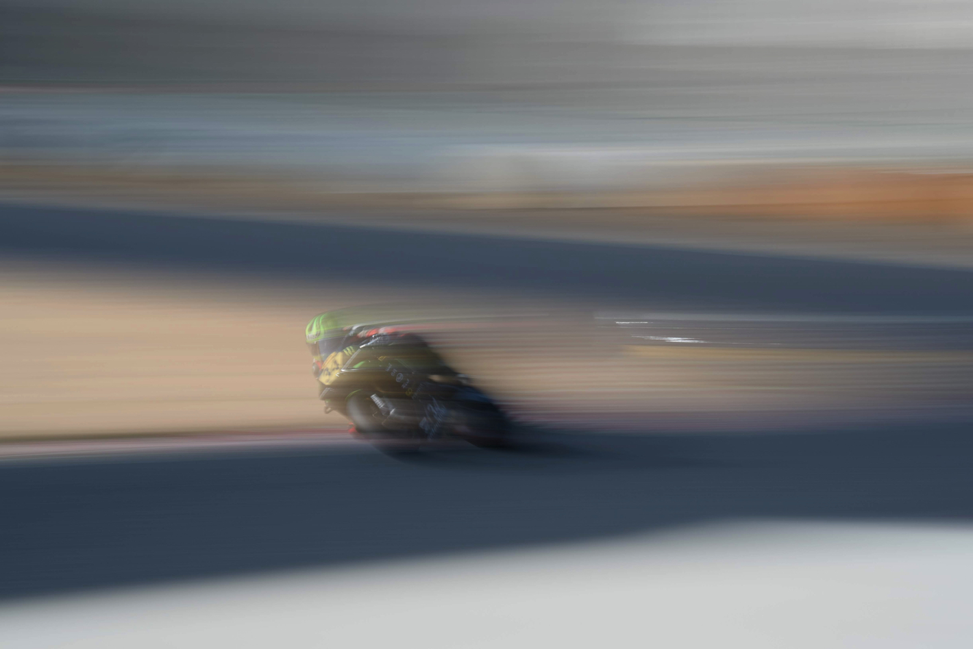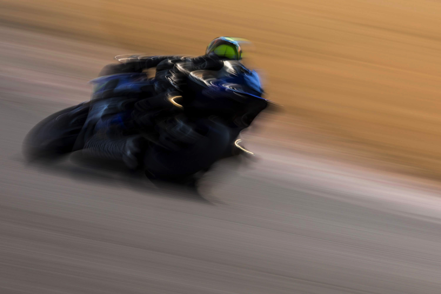 第1ヘアピンの外側から撮影。急カーブの車体バンクは2輪ならではの迫力。