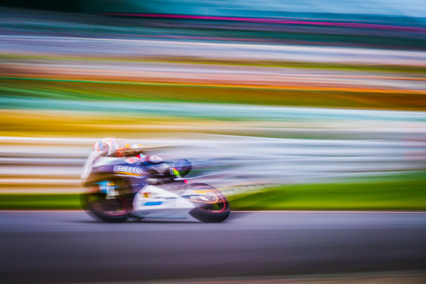 走る被写体の躍動感を1枚の写真に詰め込む流し撮りは決して特殊な撮影方法ではございません。でも上手くなるにはちょっとしたコツとたくさんの練習が必要。バイクのレースで戦うライダーたちは流し撮りの被写体として最適です。