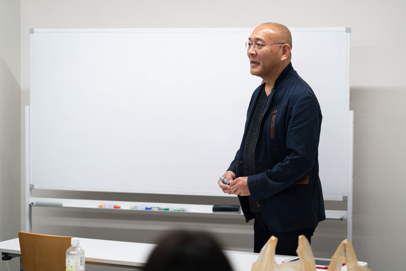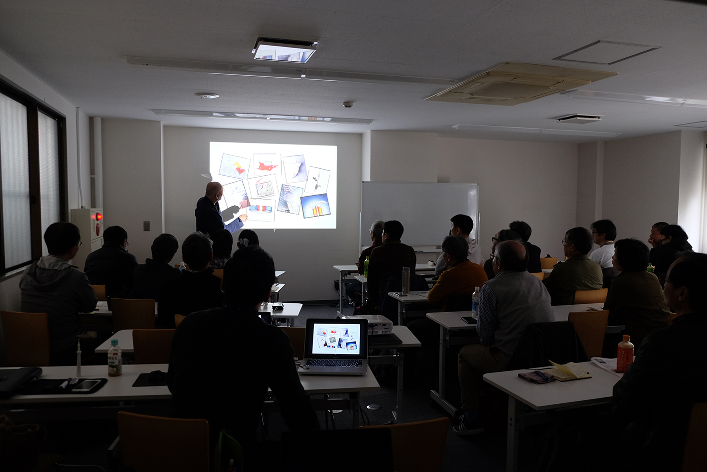 昼食を挟んで、参加者作品の講師によるレビュー、作品争奪じゃんけんのあと、長瀬さんの講義がスタート。