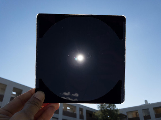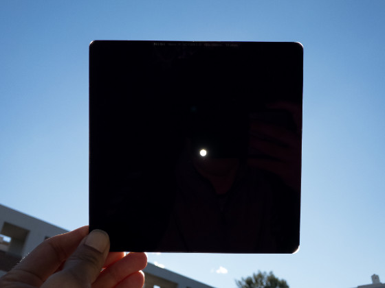 ND 8、64、1000越しに太陽を見たところ。光の透過率は肉眼でこの程度異なる。