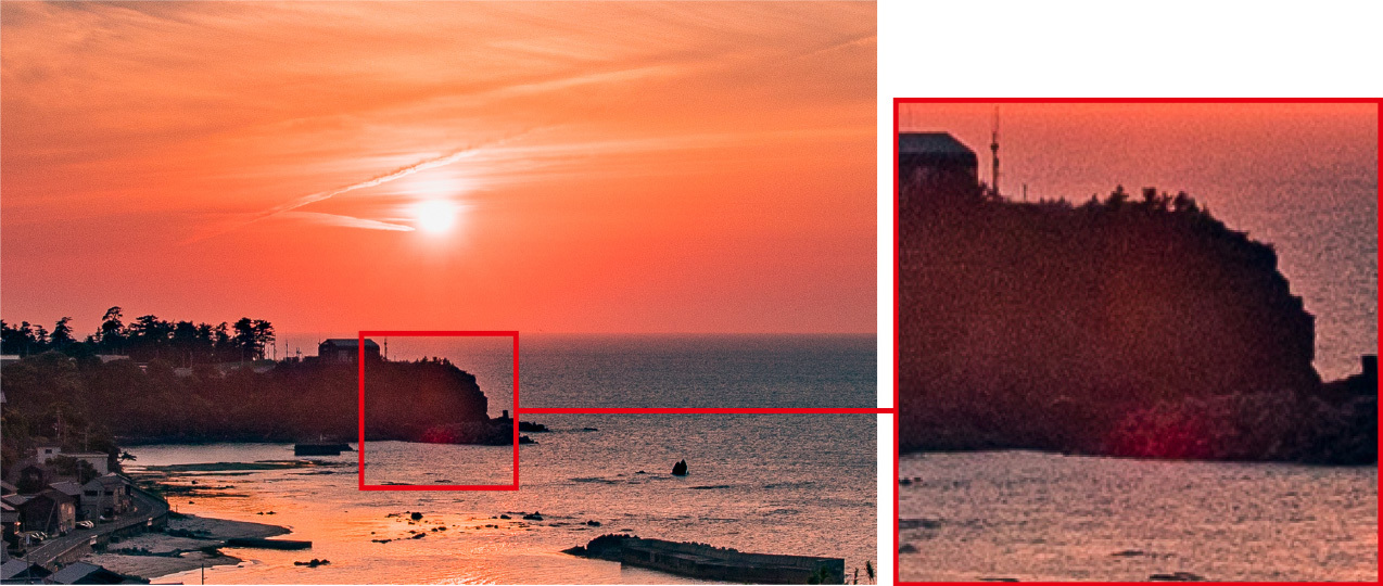 GNDフィルターがない場合は、前景が黒く潰れすぎず、なおかつ空が白飛びしないギリギリの露出を狙います。太陽に合わせた露出にすると前景は黒潰れになり、前景を残そうとすると太陽とその周辺が飛んでしまうためです。最近のカメラのダイナミックレンジは優秀なので、フィルターなしで撮影しても、編集である程度前景のシャドウを起こすことはできます。ただし、色ノイズや輝度ノイズが生じて画質が大幅に低下することは免れません。太陽の光だけを減光できるGNDフィルターは、前景のディティールを残した明るさを確保できるので、ノイズレスの綺麗な画質を得るために必須なのです。