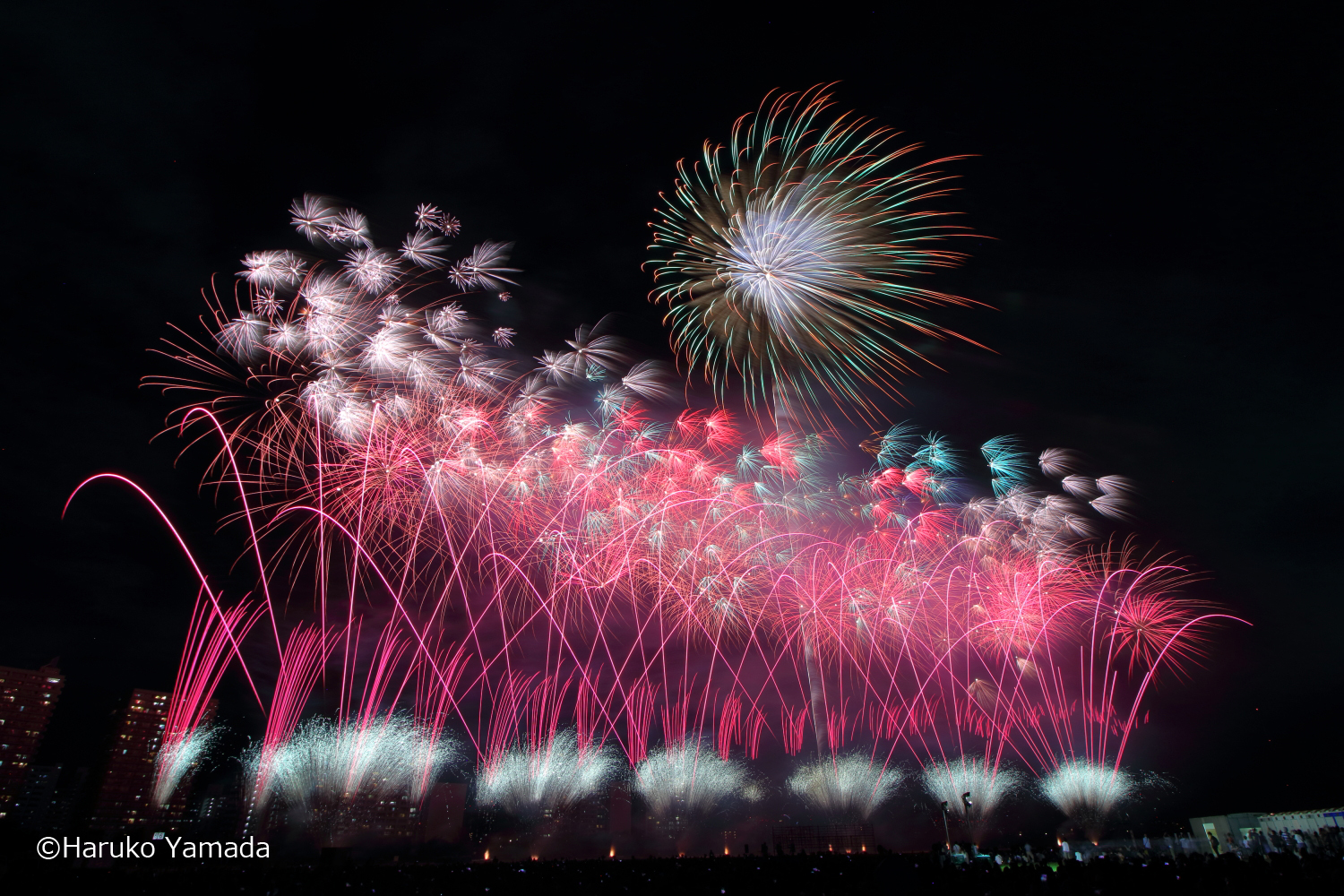 きっちりとしたプログラムのある花火大会では、プログラム毎に担当の煙火業者名が記載してある場合も多いので、煙火業者さんを意識して撮影しているうちに特徴を掴むことができるでしょう。そして、お気に入りの花火屋さんを見つけるのも、花火鑑賞の楽しみのひとつですね。
