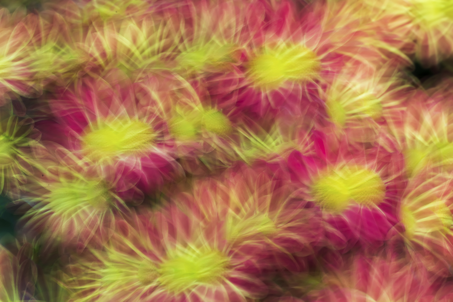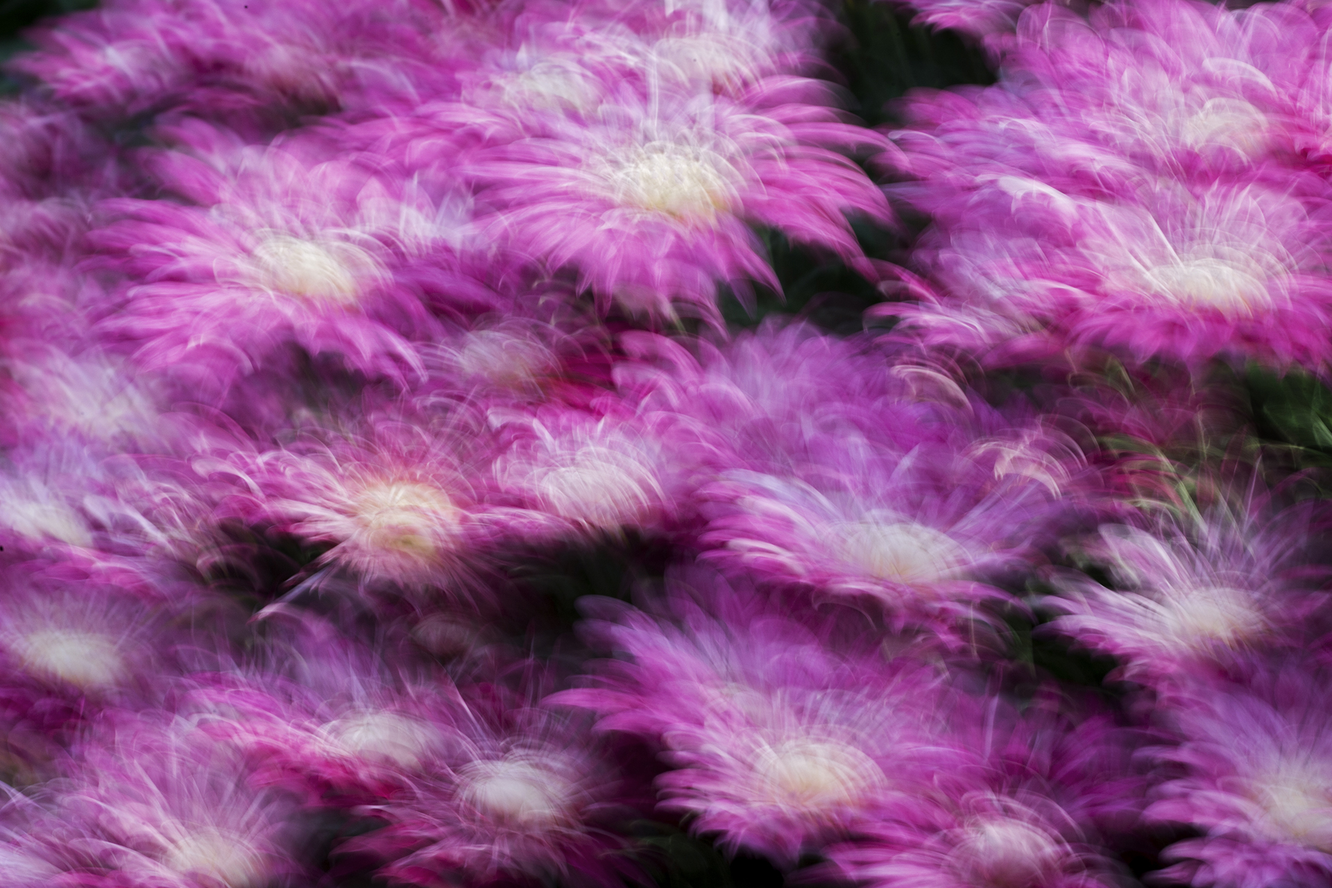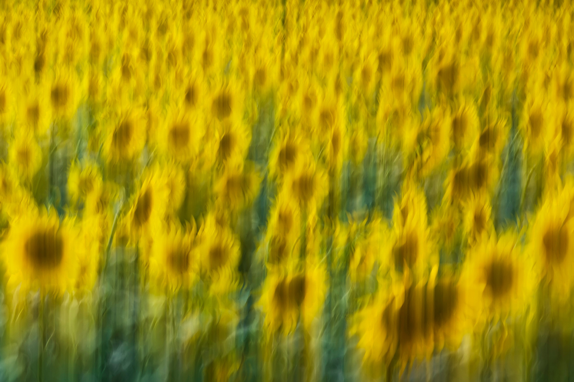 花も印象派写真の創作対象によくなる被写体だ。写真14は上下垂直にカメラを小幅に振って撮影したもので、ひまわり畑を油絵のように表現した印象派の作品だ。写真15と写真16は左右水平に小幅にカメラを振って動かしたもので、それぞれ個性的な表現となった。