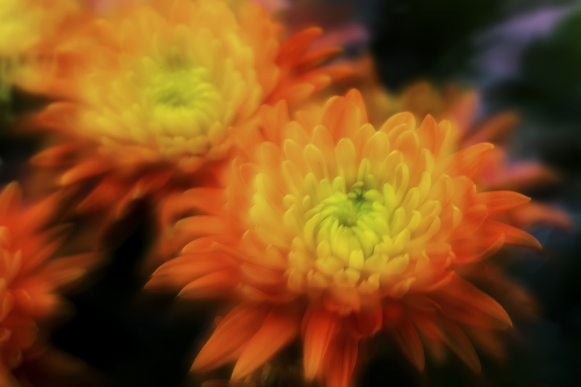 振り返ってカメラをぶらす撮影効果を分析してみて分かったのは、自然な手振れのようなごく小幅なブレは、被写体の輪郭をぼかしつつも、構図や色彩などの要素を残すことができていたのだ。この経験から、小刻みにカメラをぶらす方法で、構成要素の多い景色でもその原形の雰囲気を残しつつ、抽象化表現にすることができると気づいた。ごく小幅のブレでカメラを揺らしながら何度も撮影を重ねた結果、構成要素の多い複雑な景色においても印象派撮影技法を応用することができることがわかった。