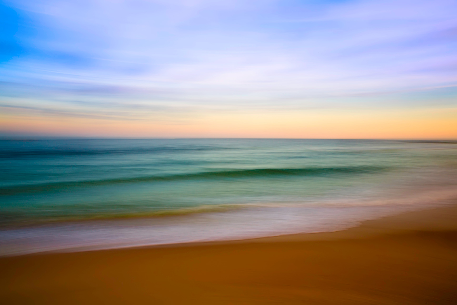 写真1は米国ニュージャージー州ベルマー(Belmar)ビーチでのスローシャッターパンニング撮影の作品。たいていの砂浜のラインは横方向なので、水平にパンさせて撮影することで、どんな砂浜でも独特な印象派写真が出来上がる。