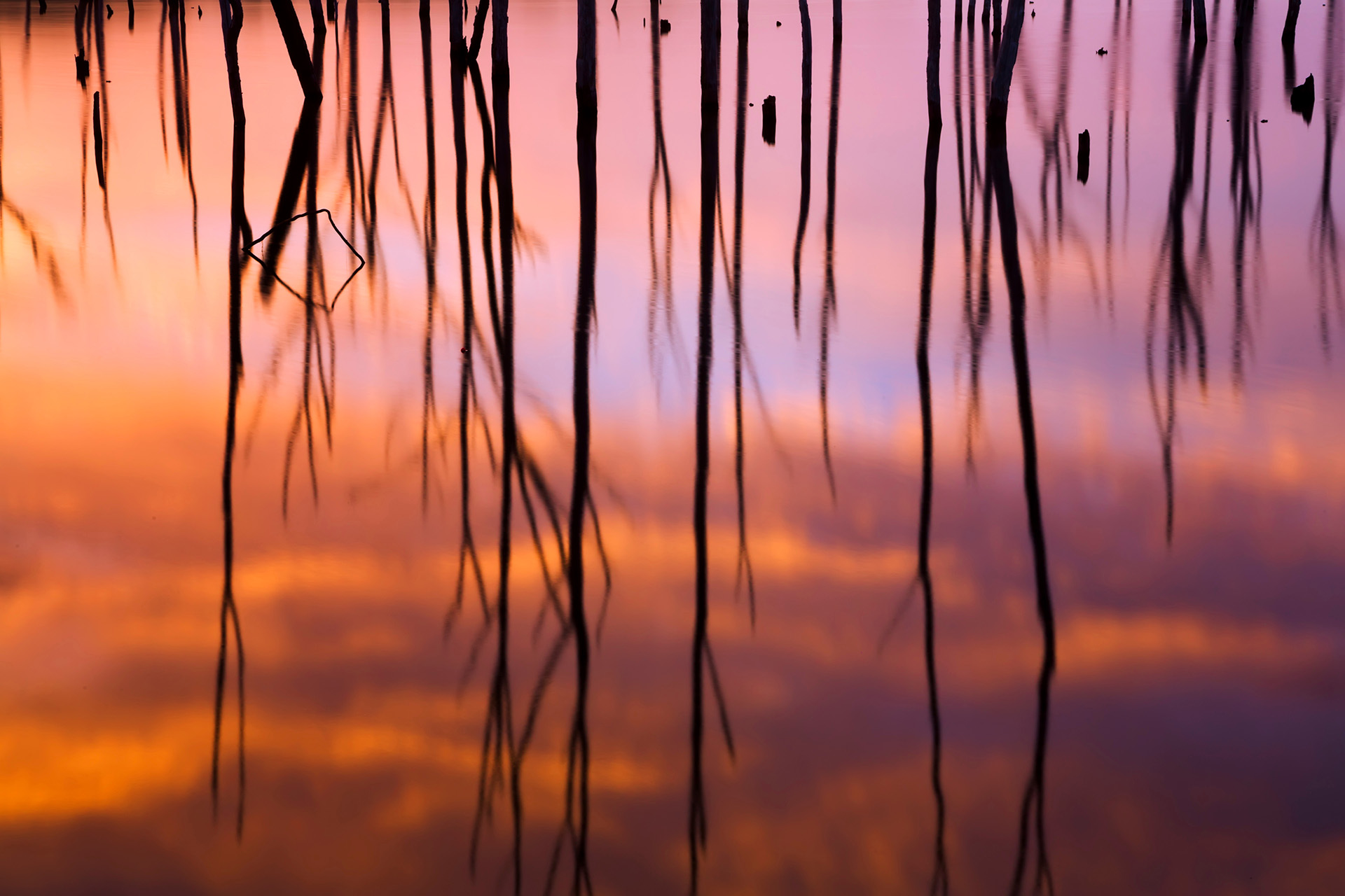 印象派写真に向いているもうひとつの被写体がリフレクションだ。ありふれた道端の水たまりにも、湖や川の水面、海面にもシャッターチャンスがある。滑らかな表面でも、波立つ水面でも、とてもユニークな印象派写真を創作することができる。