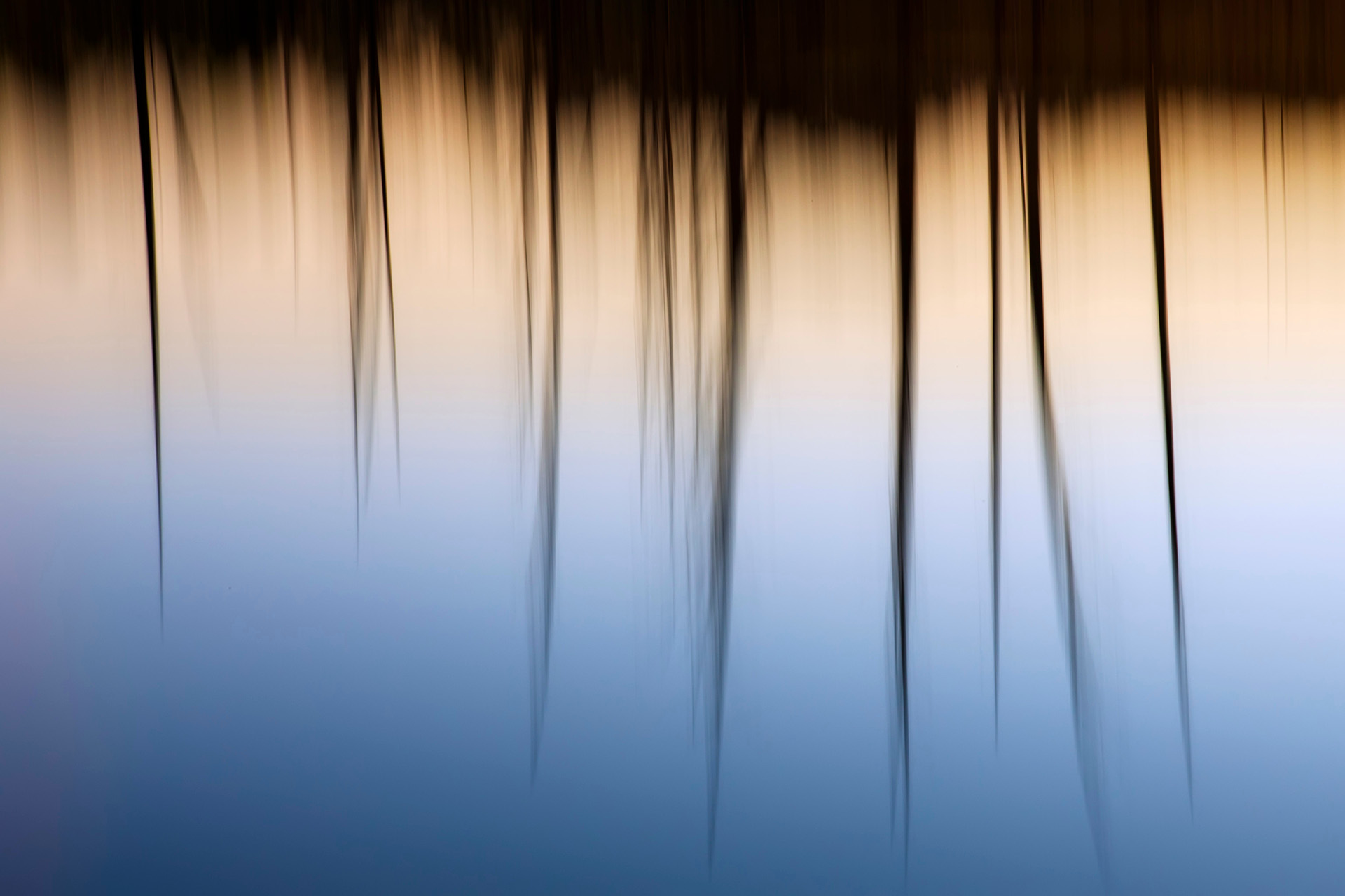 写真5と写真6は同じ場所で撮影している。写真6では広角レンズを使い、湖面から空まで広く取り込みトーンを増やしている。印象派写真において広い画角を使う場合は、背景に余計なものを入れずシンプルにできるかどうかに気をつけたい。カメラを動かしながらの撮影は線が強調されるので、なるべく要素を少なくしないと乱雑な写真になってしまうからだ。