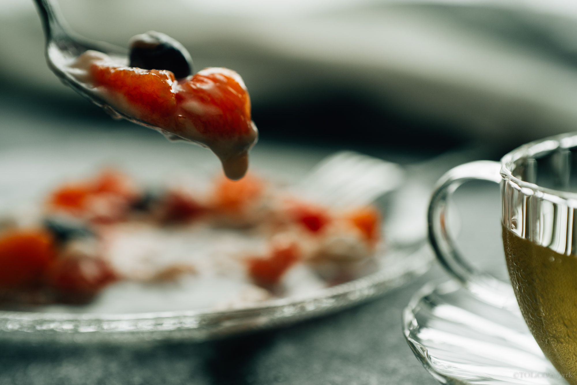 レンズはBiotar 58mmF2を使用。このレンズは豪快なグルグルボケが特徴です。そのグルグルボケをテーブルフォトで使うのは難しいのですが、Biotarはボケが硬く少し色味が青く出るのでスッキリした写りになると考えました。