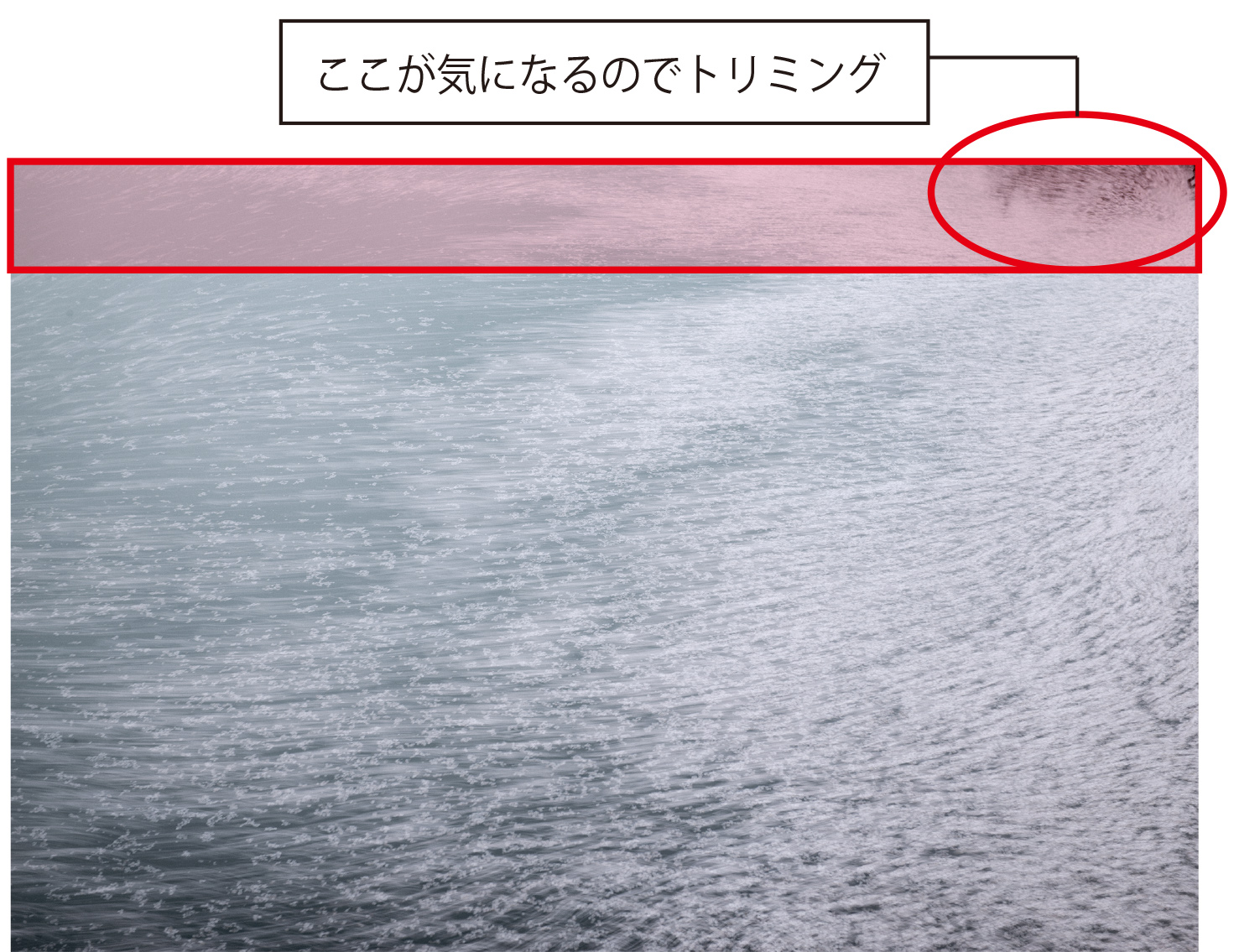 ③ハイアングルから水面だけを切り取る