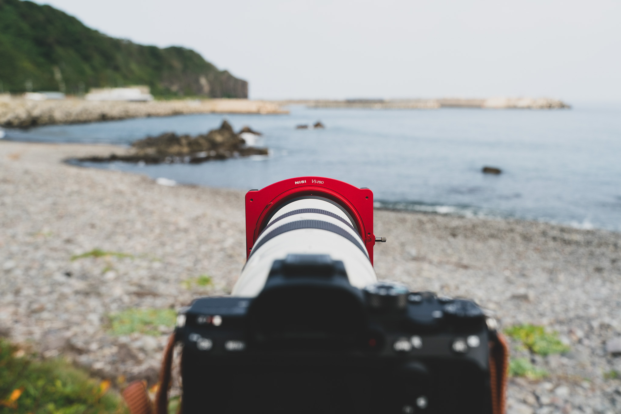 シャッタースピードが1秒になるまで絞ると、水の流れが繊細な糸のように見え、柔らかい水とゴツゴツとした岩との対比を表現できるようになりました。さらに波には動きが見える反面、カモメたちはピタッととまっています。その様子は普段動き回る動物を「静」、打ち上がる波を「動」として捉えられているようで、これもまた面白い表現だと感じました。ここまでND64のフィルターを使用してきましたが、シャッタースピードを1秒にするのにF16まで絞っていたので、このままND64を使用してこれ以上長いシャッタースピードで撮るには限界がありました。人間とは欲深い生き物です。私はさらに長い露光時間で撮りたいと思い、フィルターを交換することにしました。