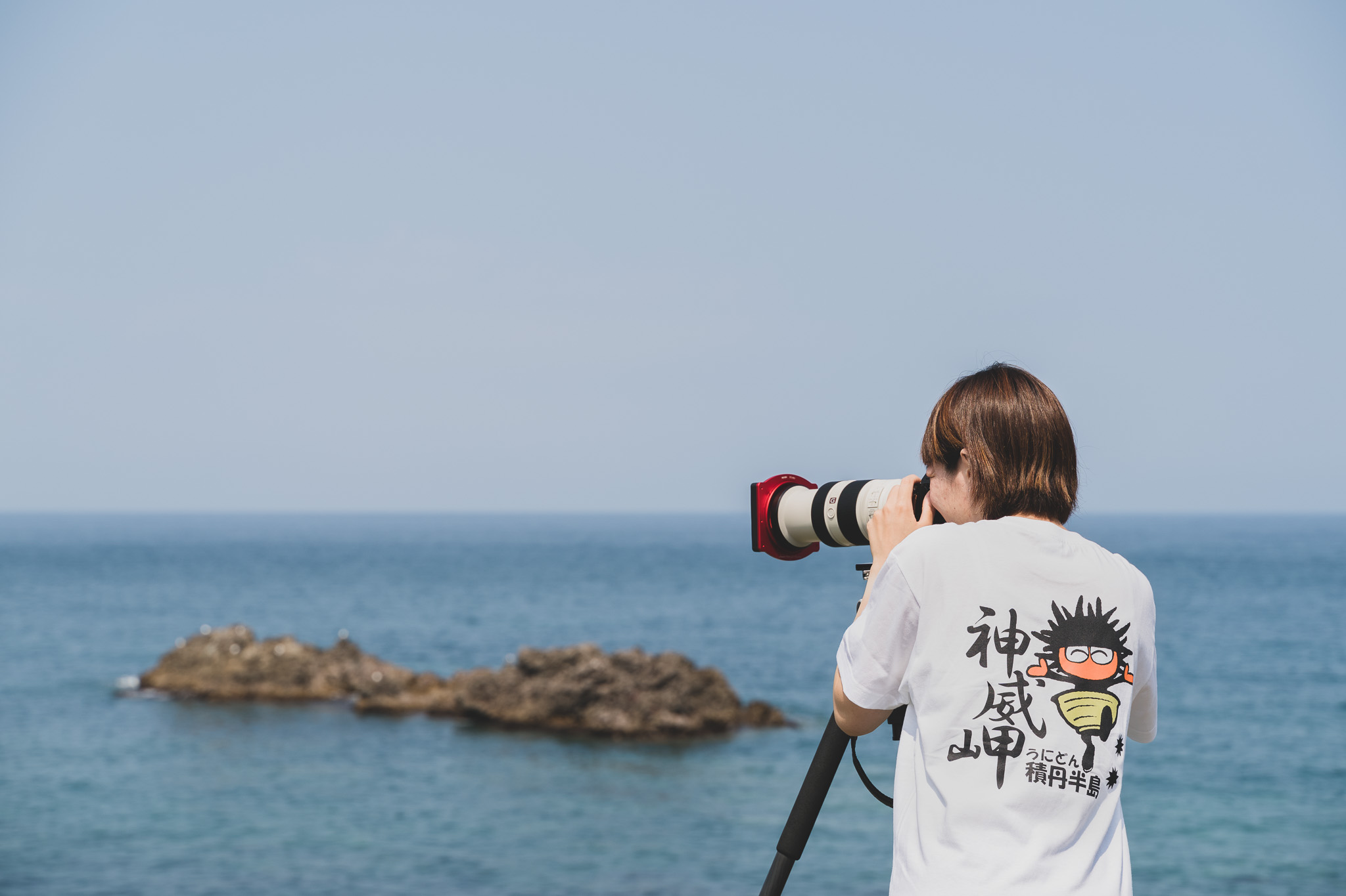 ブルーに染まる海から突き出した三角形の岩には、黄色い足と黒い点のあるくちばしが特徴のウミネコと思われるカモメがとまっています。カモメがじっとしている間シャッターを開けて、岩に打ち寄せる波の形を長秒で写し撮れたら面白そうです。私は長秒での撮影に挑戦しようと、ND64のフィルターをセットしました。時刻は午前8時ごろ。明るい時間だったので、シャッタースピードを調整するためさらに一段絞ります。勢いのある波が押し寄せる瞬間と、カモメがじっとするタイミング。この二つを狙ってシャッターを切り続けました。