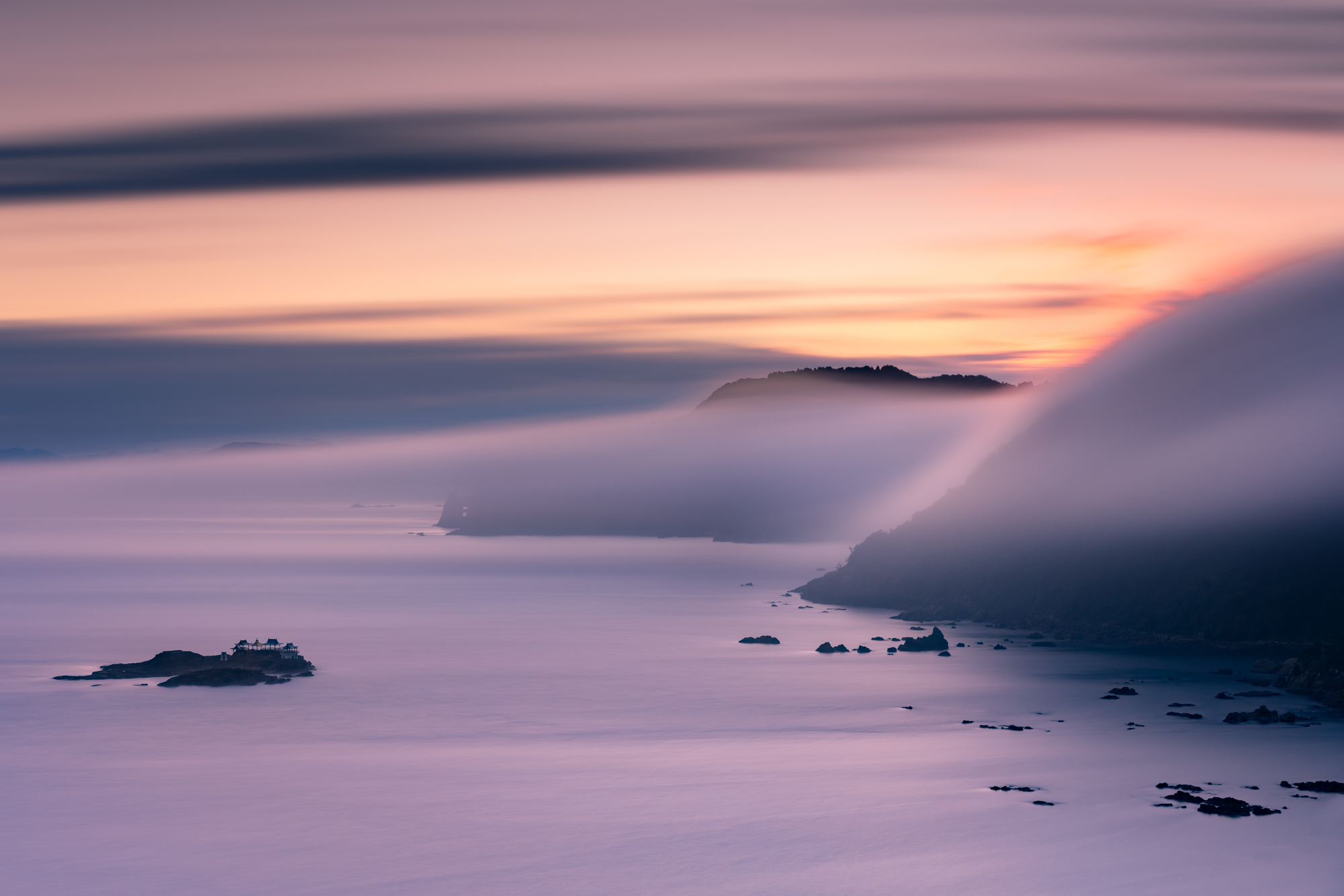 亜沙美さん 私はどちらかというとフィルムでスナップ写真を撮るのが好きなのですけど、主人の影響もあって風景写真も好きになりました。風景写真を始めた時は、その時に持っていた機材で撮れるものを撮っていましたが、例えば朝焼けとか夕焼けの時に、横で主人がフィルターを使って撮った長時間露光写真を覗き見すると、きれいな風景に雲のダイナミックな動きが加わり、さらにドラマチックになっていたんですね。こういうのを見せられちゃうとフィルムカメラでもフィルターワークに挑戦してみたいなという思いが強くなります。ニュージーランドでの経験もあり、次第に自分も積極的に長時間露光をしてみたいと思うようになりました。自分のフィルターをまだ持っていなかったので主人にフィルターを借りて日中の長時間露光もしてみるようになりました。これは私の実家の近くで撮った滝雲で、円形フィルターを重ね使いしてND1000相当にしていたと思います。現像が上がった写真を見て、フィルムカメラでのフィルターワークが予想を超える結果を出してくれることを実感しました。