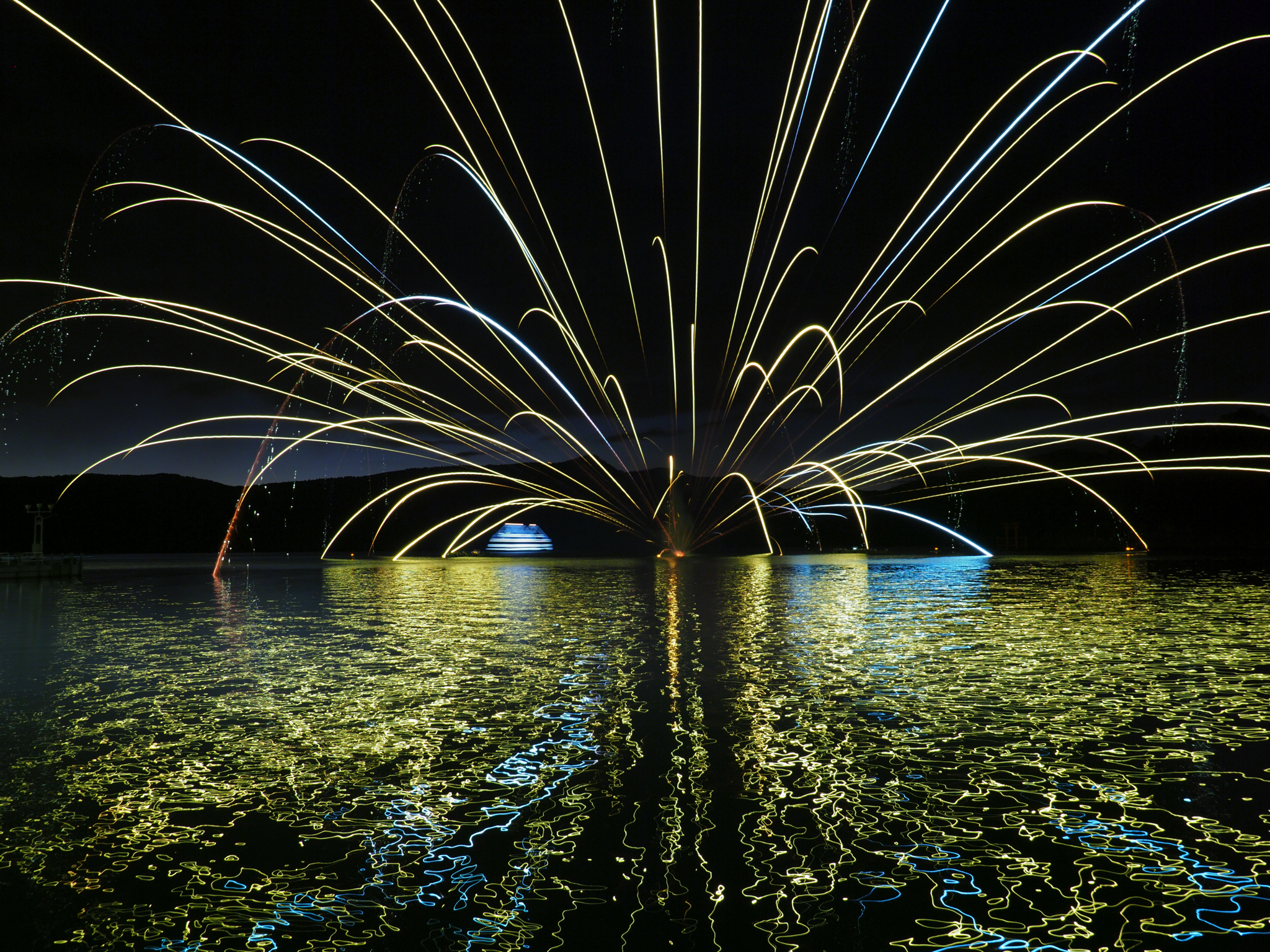 特に水中花火は半円球の花火と湖面の映り込みが素晴らしいと感じます。