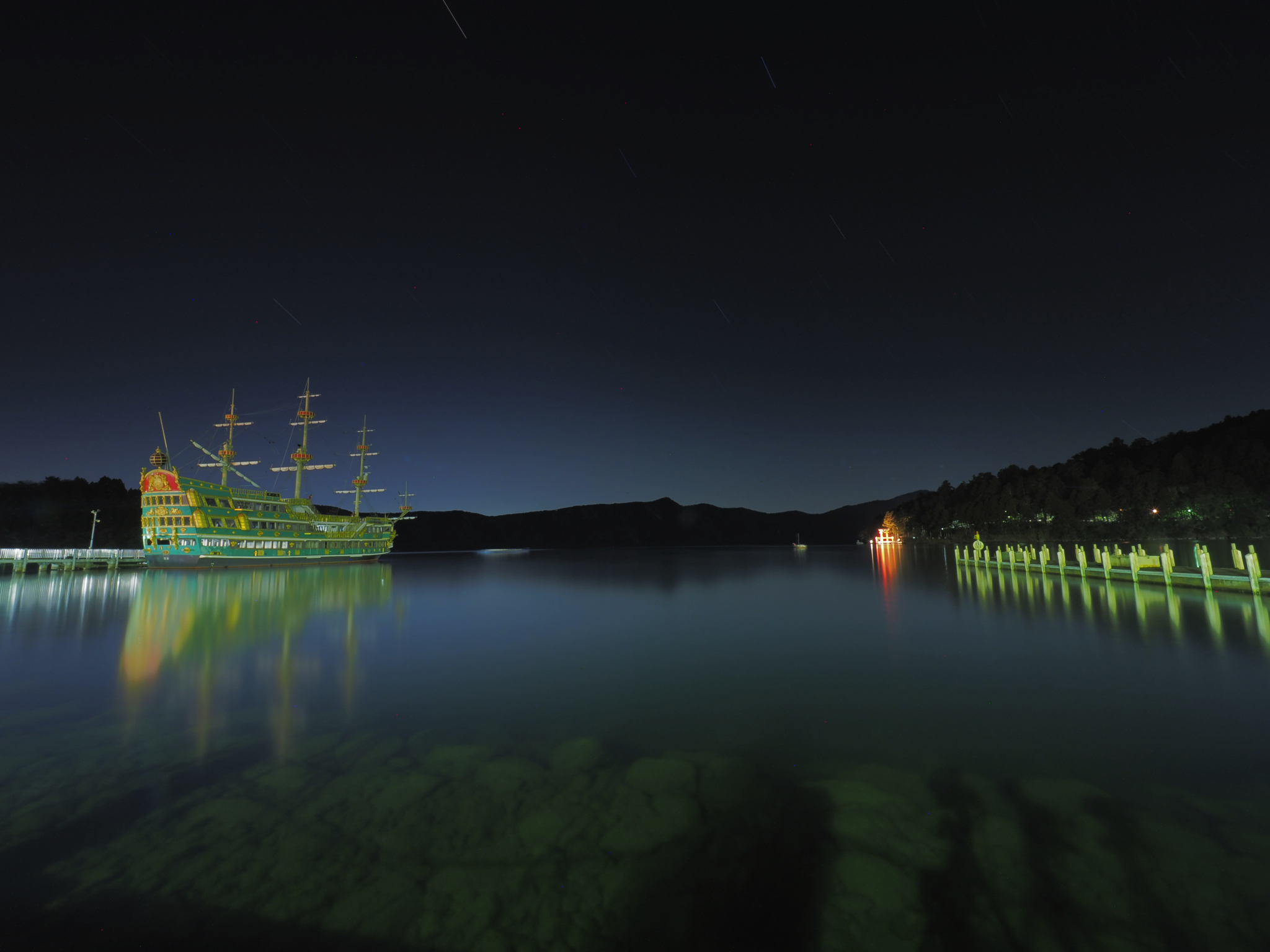 風の無い芦ノ湖の様子