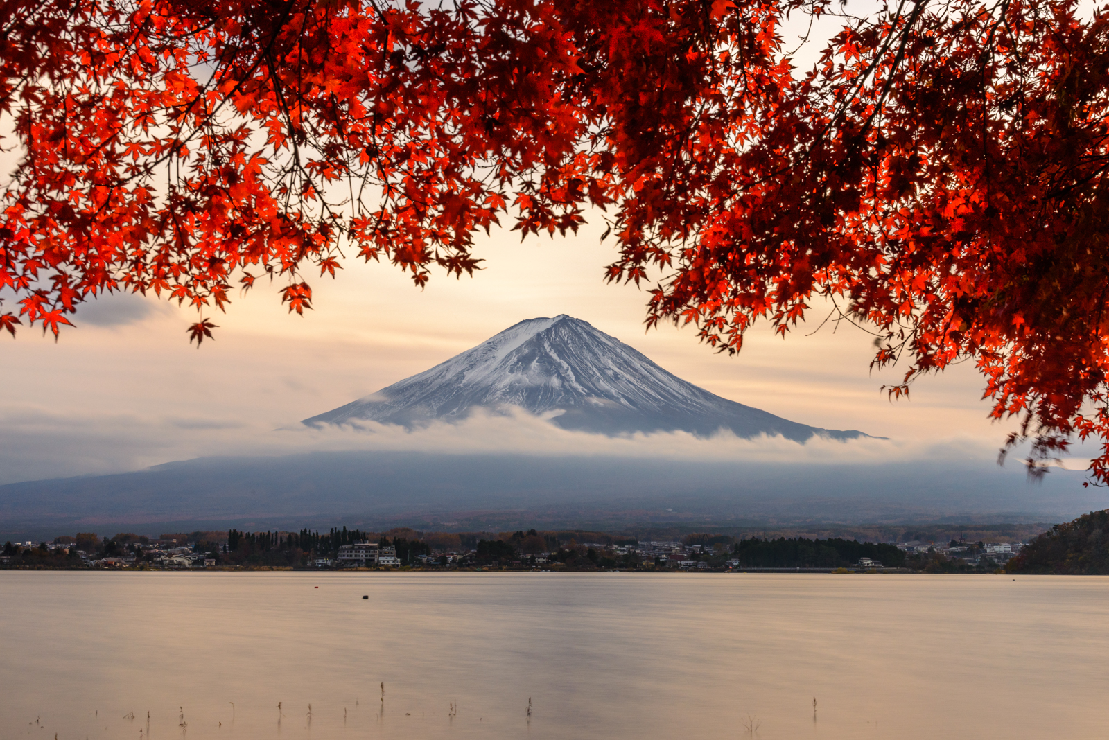 — こちらは美しい夕陽ときれいな逆さ富士ですね。